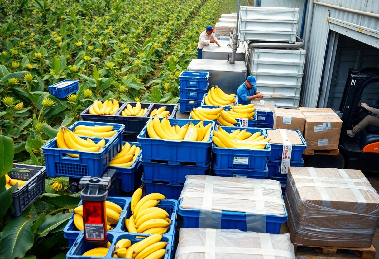 Taking this into account, you see how a banana’s journey – from harvest and refrigerated shipping through ripening rooms to store shelves – hinges on tight logistics, precise ethylene control, and intense timing pressure; high loss rates during transport and ripening mean your supply chain decisions directly shape availability, price, and the environmental cost of what ends up in your cart.